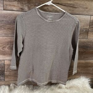 L.L. Bean Ladies Brown and White Striped Pullover Top, Size Small