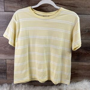 L.L. Bean Ladies Pullover Short Sleeve Top, Size Small, Yellow & White