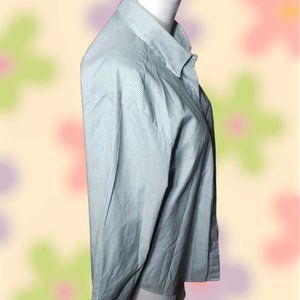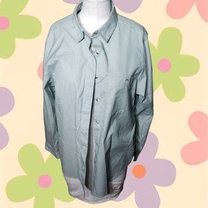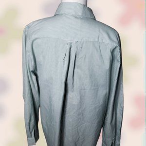 LL Bean Ladies' Striped Button Down Shirt - Green Striped Chambray Size 14