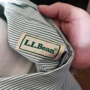 Vintage LL Bean Ladies' Striped Button Down Shirt Green Striped. Long Sleeved. Breast Pocket . I believe this shirt to be a size 14. Please review the flat measurements before purchasing.