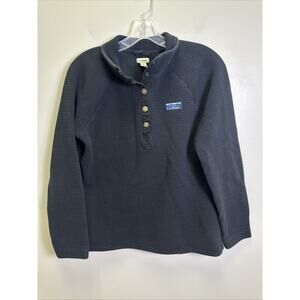 LL Bean Lakewashed Sweater Women's M Double Knit Quarter Snap Black