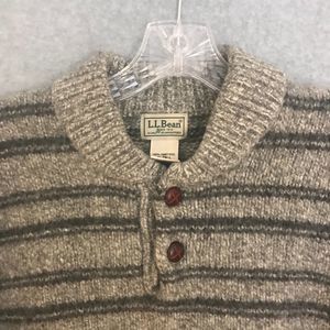 LL Bean Lambs Wool Sweater Mens Large Green Gray Striped Knit Ribbed Pullover