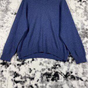 LL Bean Lambs Wool Sweater Mens Size S/M Blue V-Neck Comfort Casual