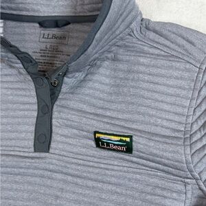 LL Bean Large Regular Gray Ribbed Airlight Snap Button Pullover Sweater