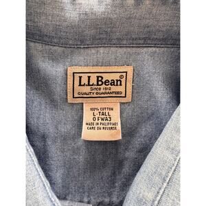 L.L. Bean Large Tall Blue Chambray 100% Cotton Long Sleeve Button Front Shirt