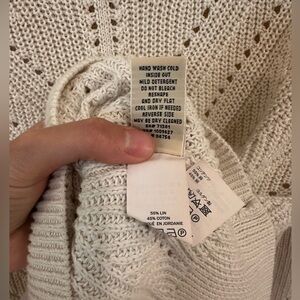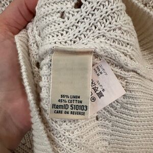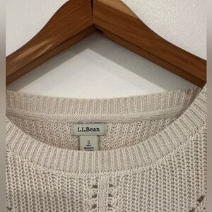 Women’s LL Bean open knit sweater + cotton / linen blend + size small + beige / cream in color + approx measurements, pit to pit: 20in & length: 27in + ships from 100% smoke free home