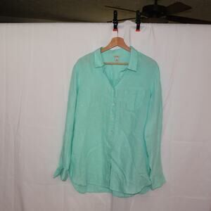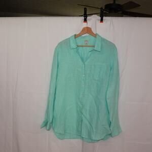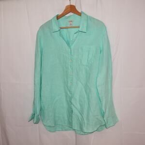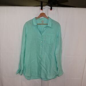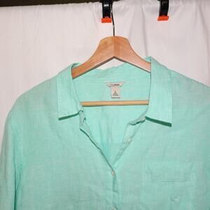 LL Bean Linen Blouse Size L Light Blue Long Cuffed Sleeves P2P 23"