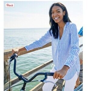 L.L. Bean premium washable linen striped tunic, made of premium-grade European flax, split neckline with front pleat.