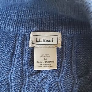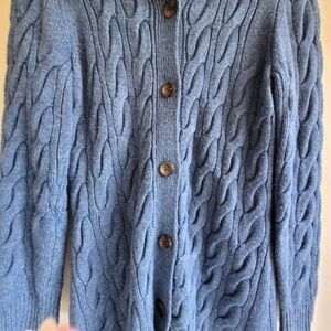 LL Bean Long Cable Knit Wool Cardigan Sweater Blue Women's Medium