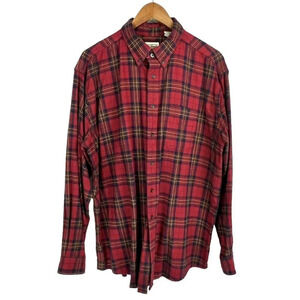 L.L. Bean Long Sleeve Flannel Mens XL Reg 100% Cotton Red Multicolor Button Down