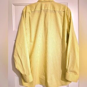 L.L. Bean Men's Cotton Long Sleeve Button Closure Yellow Shirt with a Blue Checkered Pattern. Pocket on Left Chest. Size Large. In Excellent Condition.