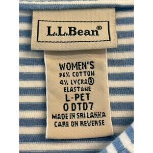 L.L. Bean Lt. Blue and white stripe 3/4 sleeve collared V. neck L-Petite