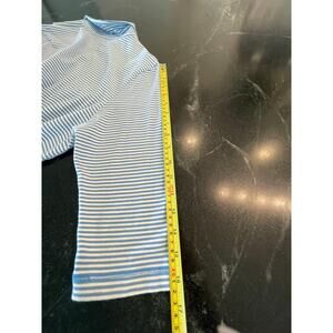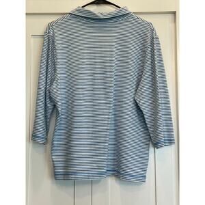 L.L. Bean Lt. Blue and white stripe 3/4 sleeve collared V. neck