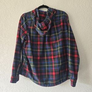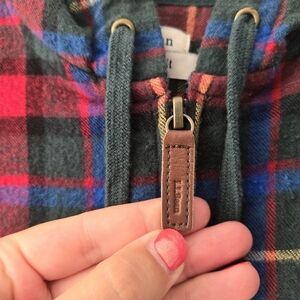 L.L. Bean M Full Zip Plaid Hooded Sweatshirt Flannel Cotton