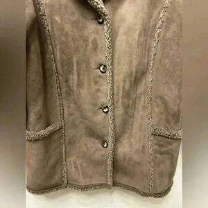 LL Bean MED Fleece Sherpa Lined Faux Suede  Jacket  y2k Winter Phoebe Buffay