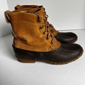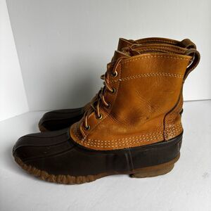 LL Bean Maine Hunting Shoe Duck Boots Women's Size 8 Brown Leather USA Vintage