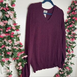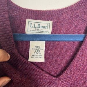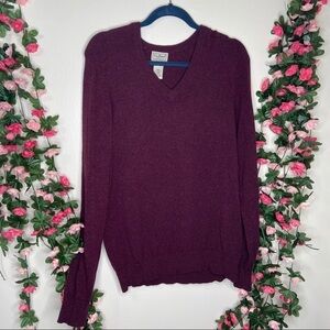 .L. Bean Maroon Purple Men’s V-Neck 100% Lambswool Sweater Small Work Office