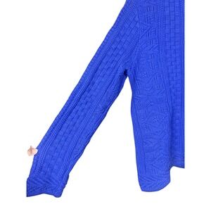 Classic L.L. Bean cable knit weave sweater jacket in a vibrant blue.