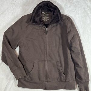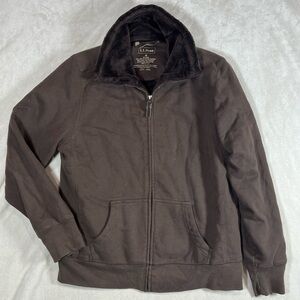 L.L.. Bean Medium Brown Fleece Lined Thick Warm Full Zip Synchilla Sweater Coat