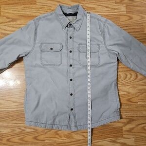 L.L. Bean Men M Reg Light Grey Button Up Jacket Sherpa Line Chest Pockets Casual