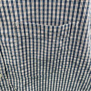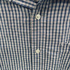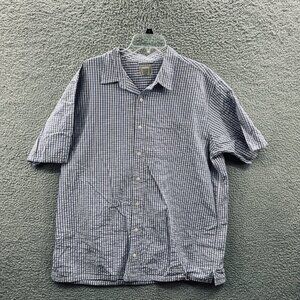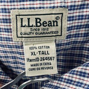 LL Bean Men Shirt Extra Large Blue Plaid 100% Cotton Short Sleeve Button Front