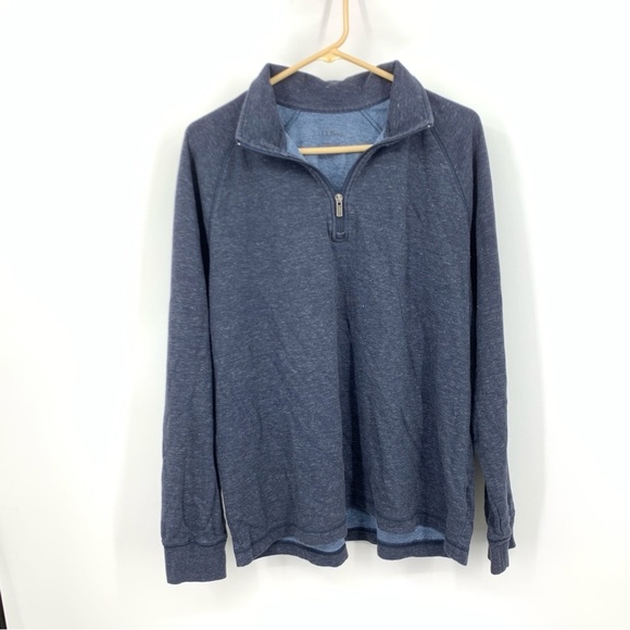 LL Bean Men Size Large Pullover 1/4 Zip Sweater Top Blue Cotton Blend Shirt