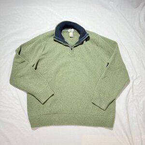 LL Bean Men's 1/4 Zip Sweater XL Green 100% Cotton