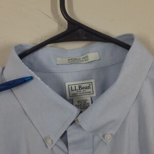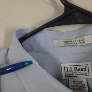 LL Bean Mens 17.5-34 Blue Wrinkle Free Slightly Fitted Long Sleeve Button Up...