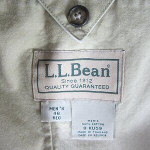 L.L. Bean Mens 46 R Khaki Beige Cotton LS Blazer Jacket 2 Button Closure