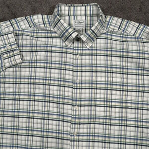 Bundle of three men’s LL Bean button-up shirts, ideal for work, casual, or everyday wear. Two shirts are XXL Tall and one is 18” x 37” All shirts are classic long-sleeve button-downs that have been adaptively modified with hidden magnetic closures at the 3rd and 4th button location.
