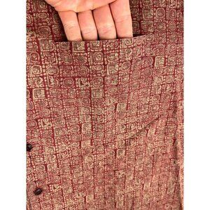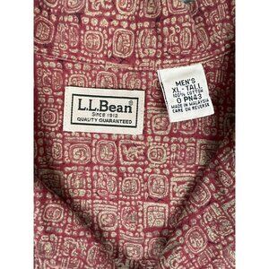 LL Bean Mens Aztec Mayan Cotton Short Sleeve Button-Down Shirt XL Tall XLT Red