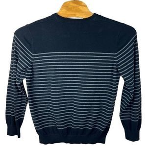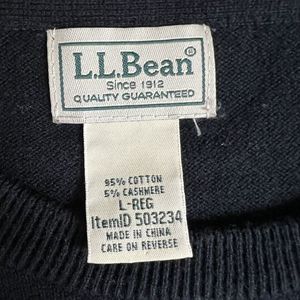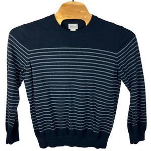 L.L Bean Mens Black Gray Striped Cashmere Blend Crew Neck Sweater Large