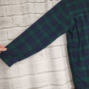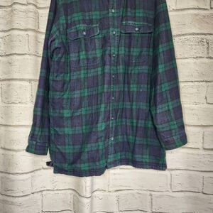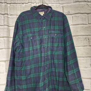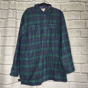 LL Bean Mens Blue And Green Plaid Flannel Fleece Lined Button-up Shacket Large
