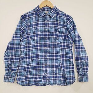LL Bean Mens Blue Plaid Button Up Shirt Long Sleeve Size M Casual Everyday Work