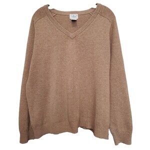 This is a LL Bean Men's Brown 100% Lambs Wool V-Neck Pullover w/added Elbow Patches LGE