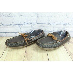 LL Bean Men's Brown Leather Cotton Flannel-Lined Handsewn Slippers Size 11 M