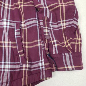 L.L. Bean Men's Burgundy Plaid Fleece Lined Light Jacket Heavy Flannel Shirt
