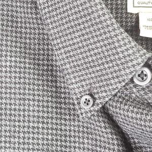 LL Bean Mens Button Down Flannel Shirt Gray Black Houndstooth Large LS M Lodge