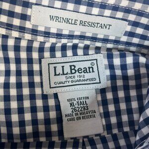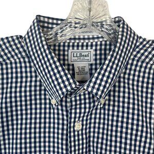 LL Bean Mens Button Down Shirt Blue White Checked Size XL Tall