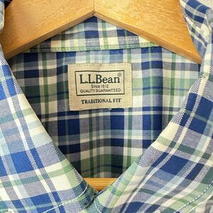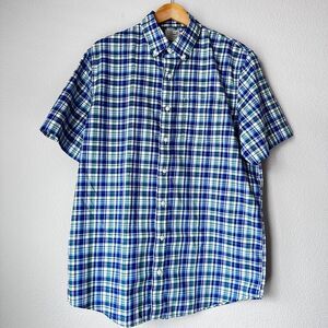 LL Bean Men's Button Shirt Traditional Fit Plaid Short Sleeve Blue Green Pocket