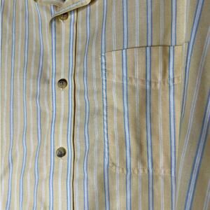 L.L. Bean men's button-down shirt in yellow with blue and white stripe, short sleeve, size XXL Tall