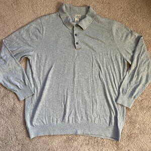 LL Bean Men's Cashmere Blend Sweater Gray Casual LS Polo Button Size XXL Reg