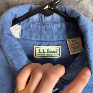 The L.L. Bean Men's Chamois Cloth Shirt is a classic and durable button-up shirt designed for casual occasions. Made from comfortable cotton flannel material, this shirt features a solid blue color with a collared neckline and long sleeves. It also includes convenient pockets and is machine washable for easy care. With a regular fit and size large tall, this shirt is perfect for the colder seasons of winter, fall, and spring.