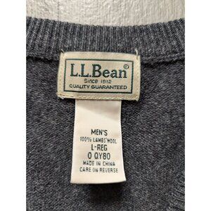 L.L. Bean Mens Charcoal Gray 100% Lambs Wool V-Neck Sweater Vest Size L-Regular