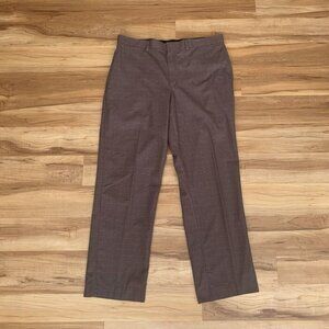 LL Bean Men's Chino Pants Classic Fit Brown Plaid Pleated 37 x 32 Flat Front
