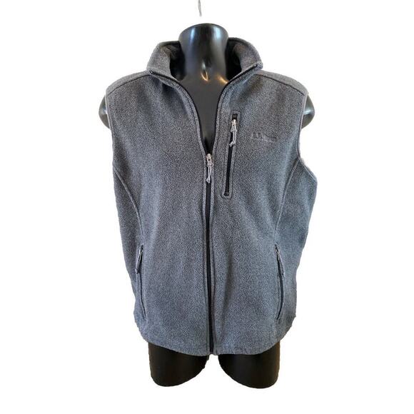 LL Bean Men’s Dark Gray Fleece Zip Vest Size Large Pockets Logo EUC