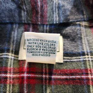 This L.L. Bean Men's Flannel long sleeve button-down shirt has a slightly fitted size XL fit Multi- Color Gray, red, green, and blue. The shirt has a front pocket. In excellent preloved condition.