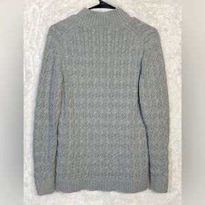 L.L. Bean men’s gray cable knit, ribbed, textured sweater. Preppy, outdoorsy, skiwear, office, long sleeve, casual, business attire, excellent used condition EUC, ships from a smoke free home.