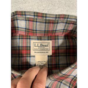 LL Bean Mens Gray Red Plaid Traditional Fit Button Down Shirt Large Tall L-Tall