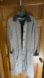 Classic gray trench coat with button closure. Features ribbed cuffs and large pockets. Ideal for layering.